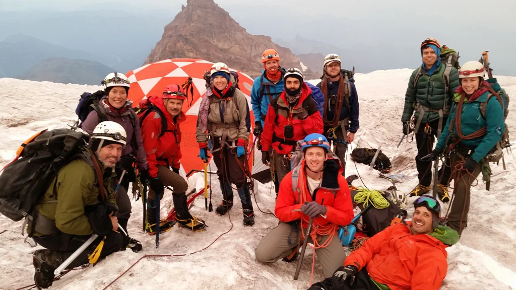 One of the porter teams at Ingraham Flats on Mt Rainier expedition