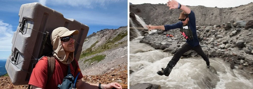 Two of the hardest working guys on the mountain... Gunnar Johnson (left) of Portland State University, and Jared Smith (right) of Volcano Rescue Team